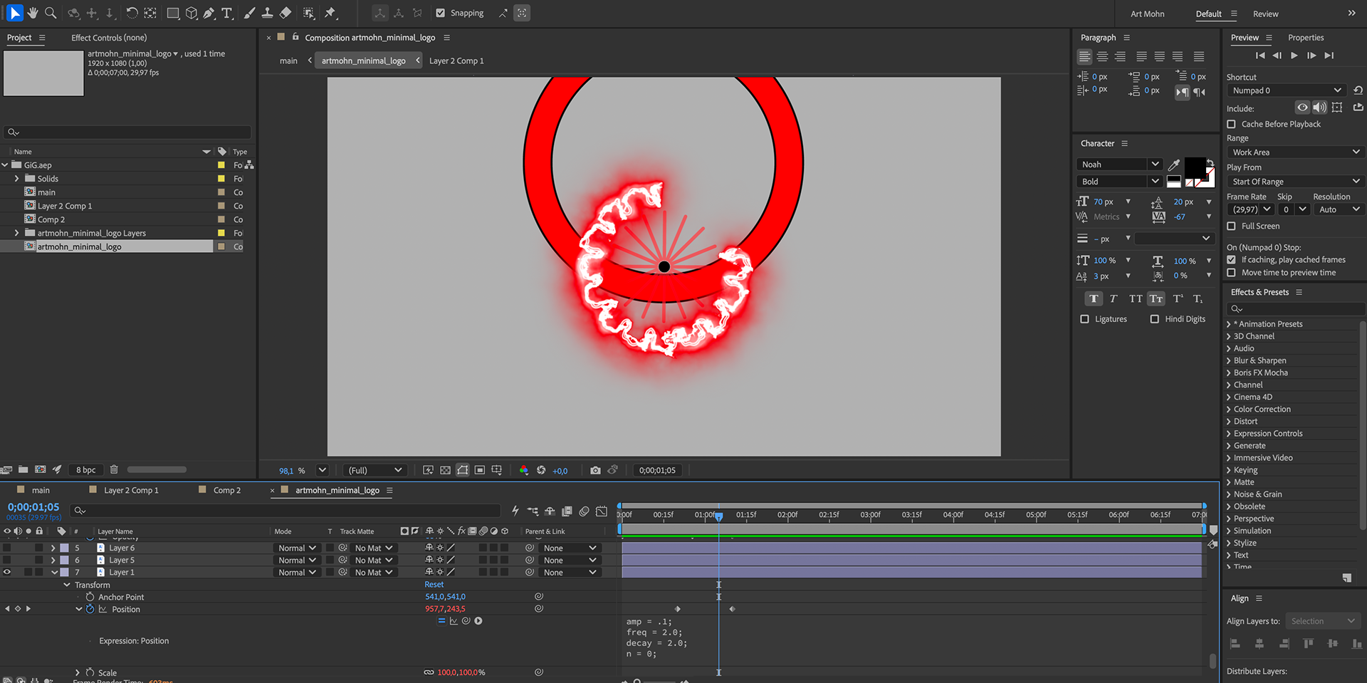 Motion process. The logo was brought to life in After Effects — each element animated with purpose and timing.