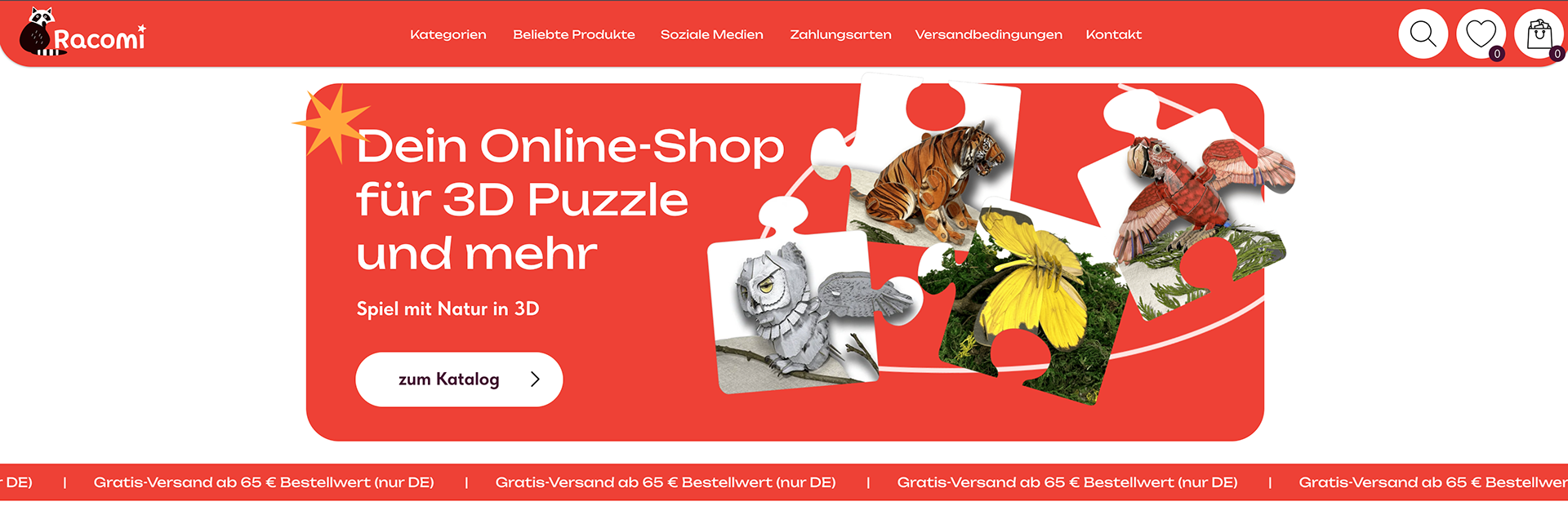 Full branding project: logo, website design and motion content for a German 3D puzzle e-commerce brand.